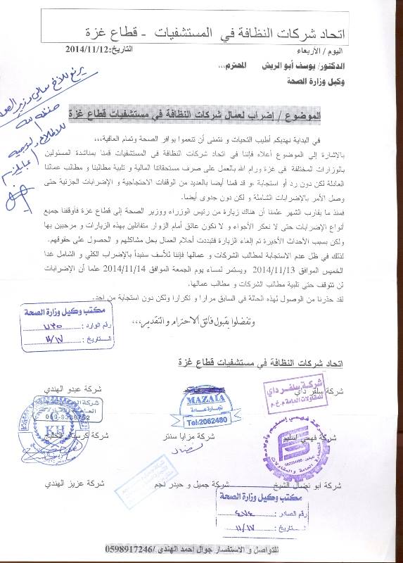 Permohonan maaf kementrian kesehatan di Gaza terkait belum bisa memenuhi proses operasi bagi para pasien yang hingga kini masih di rawat di rumah sakit syifa, pengumuman tersebut di sampaikan oleh jurubicara kementrian kesehatan di Gaza dr.Asraf Qadra, beliau menyampaikan pengumuman tersebut dikarenakan hingga kini rumah sakit masih mengalami kondisi krisis kebersihan alias kondisi sangat kotor, sampah tersebar dimana-dimana.