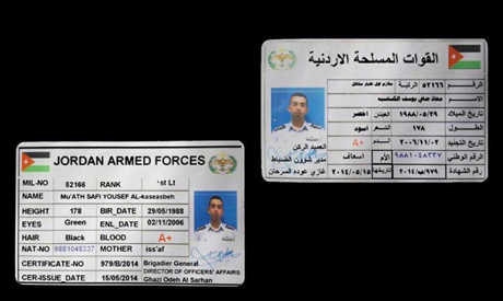 Raqqa Media Center, sayap media Islamic State wilayah Raqqa memposting kartu identitas pilot Yordania yang mereka tawan setelah pesawat tempurnya ditembak jatuh mujahidin.
